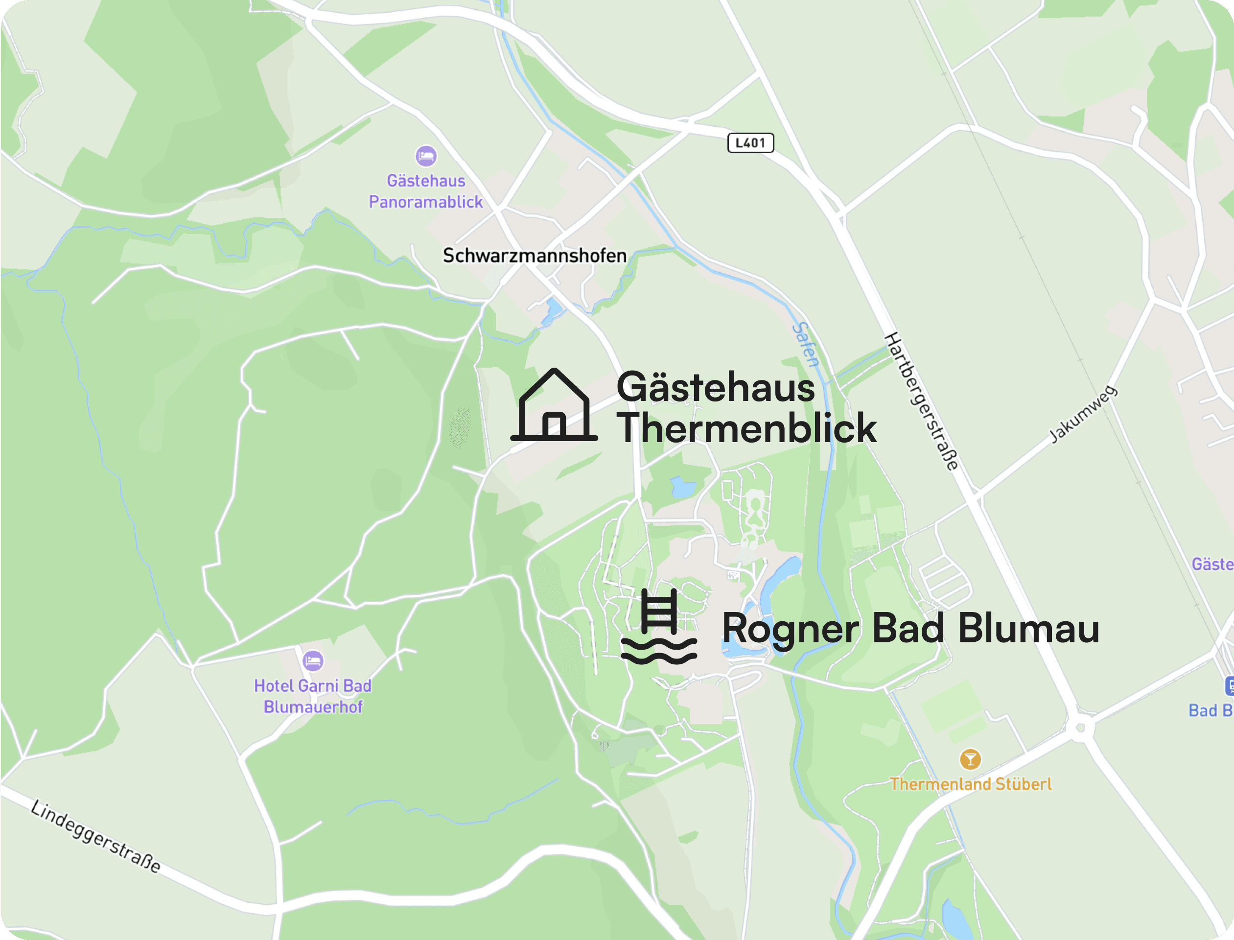 Unser Gästehaus Thermenblick liegt in unmittelbarer Nähe der Rogner Therme Bad Blumau. Die besonders ruhige Lage lädt zum Entspannen ein, aber auch der Blick auf die farbenfrohe Architektur von Friedensreich Hundertwasser ist wunderschön. Die Zimmer sind hell und liebevoll eingerichtet und bieten eine gemütliche und erholsame Atmosphäre. Am Morgen erwartet Sie ein reichhaltiges Frühstücksbuffet mit regionalen Produkten im sonnigen Wintergarten.
